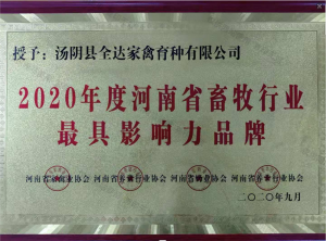 • 2020年度河南省畜牧行業最具影響力品牌